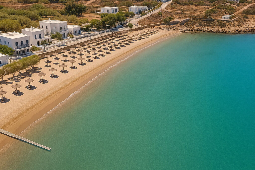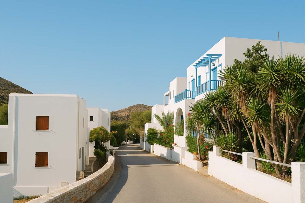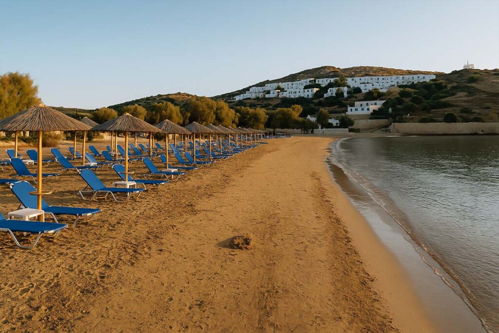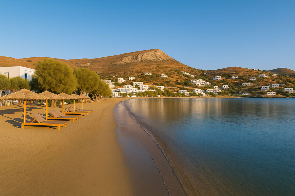 For full flexibility, consider renting a small car or scooter, especially if you’re planning to explore more secluded beaches or villages like Chroussa and San Michalis.